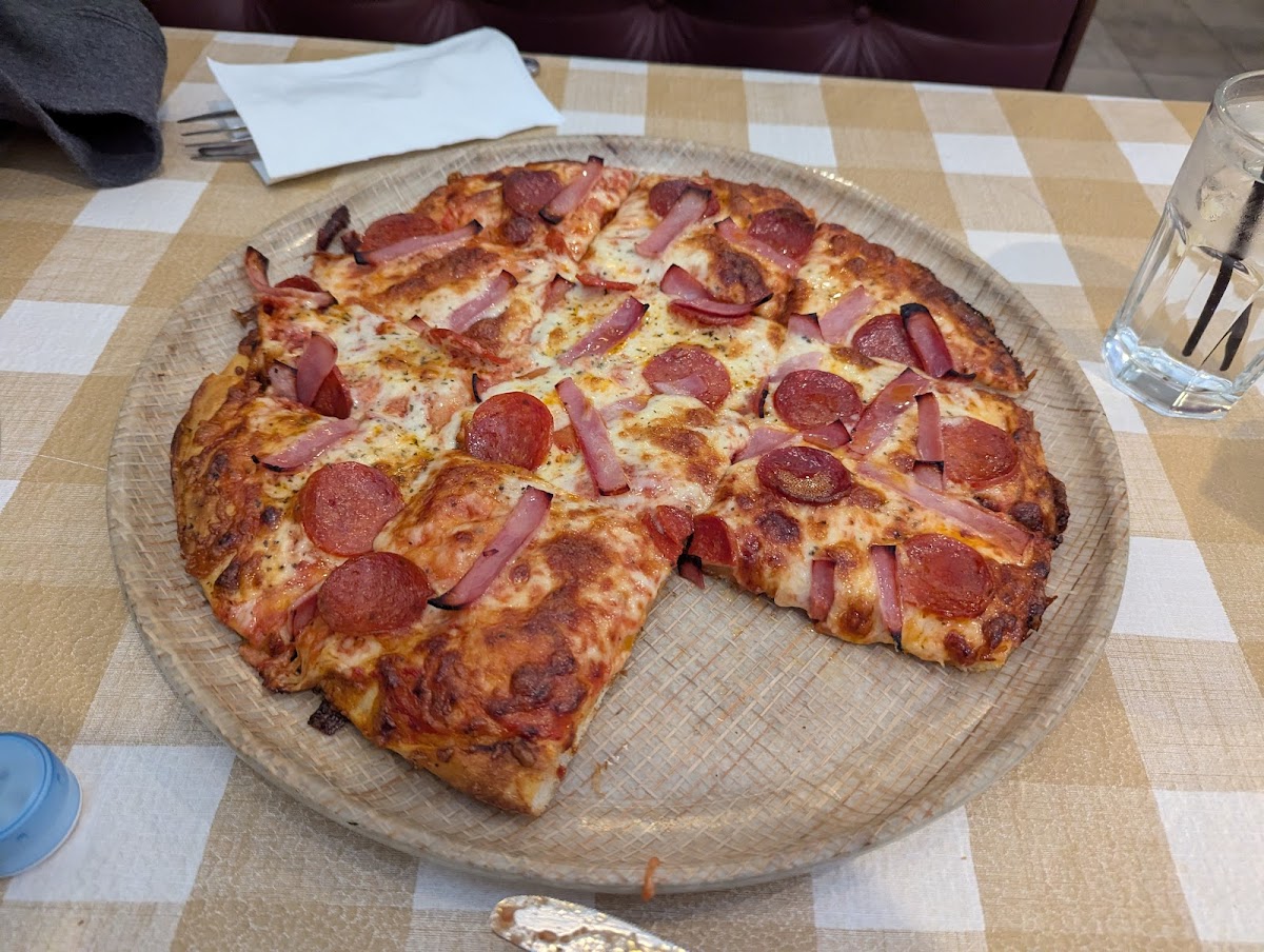 Pizza was very good... crust was thick enough to avoid droup, sauce was good but not near enough, cheese was excellent and the toppings, pepperoni and ham were also very good. Add more sauce and you would have an excellent pizza! Today I had the lasagna and it was very good, made with sweet sausage which is a bit unusual, and lots of cheese. The sauce was also very tasty. I ordered the hot turkey sandwich and the pasta and chicken parmigiana. Both were excellent! The turkey was baked on site as advertised. Juicy and tender and lots of it, the sandwich can with cheese and lettuce and was served hot. Turkey is hard to find in RI and this was the best yet. The chicken parmigiana was also excellent except that the tomato sauce was very heavy. almost a BBQ sauce. I would have prefered a more milder sauce, but that is personal preference. The chick was tender and again here was plenty. They offer several pasta choices, but no whole grain pasta. The parmigiana came with a salad which was very large, contained several types of greens, carrots and very aromatic onions. Bread was also included and again it was excellent. The menu says that the bread is baked on site andI believe it. Prices were good especially considering the portion size. I ordered take out which was ready when I arrived. All in all a very good local restaurant.